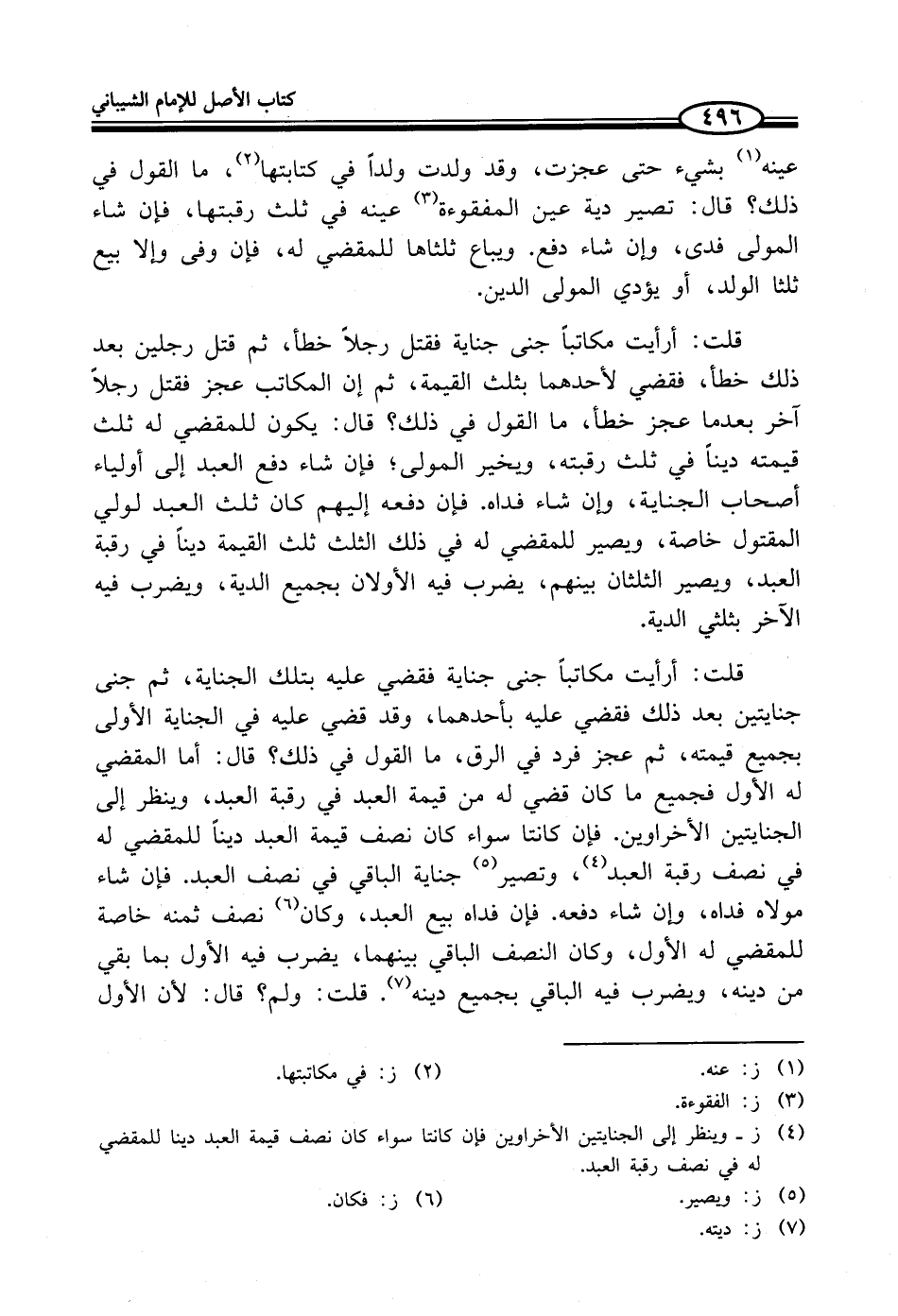 (¬4) ز - وينظر إلى الجنايتين الأخراوين فإن كانتا سواء كان نصف قيمة العبد دينا للمقضي له في نصف رقبة العبد.