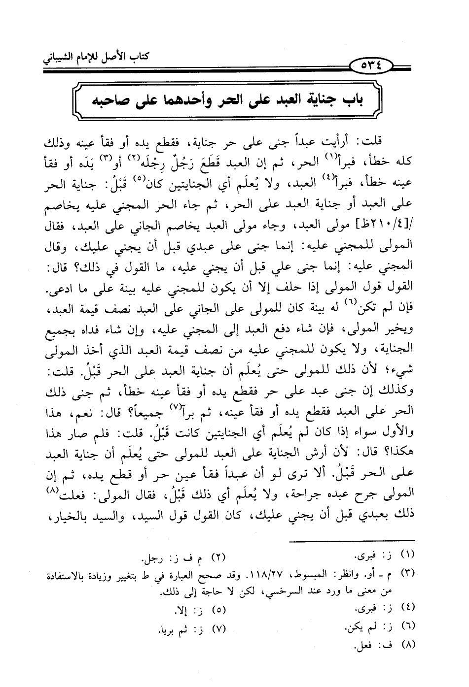 (¬3) م - أو. وانظر: المبسوط، 27/ 118. وقد صحح العبارة في ط بتغيير وزيادة بالاستفادة من معنى ما ورد عند السرخسي، لكن لا حاجة إلى ذلك.