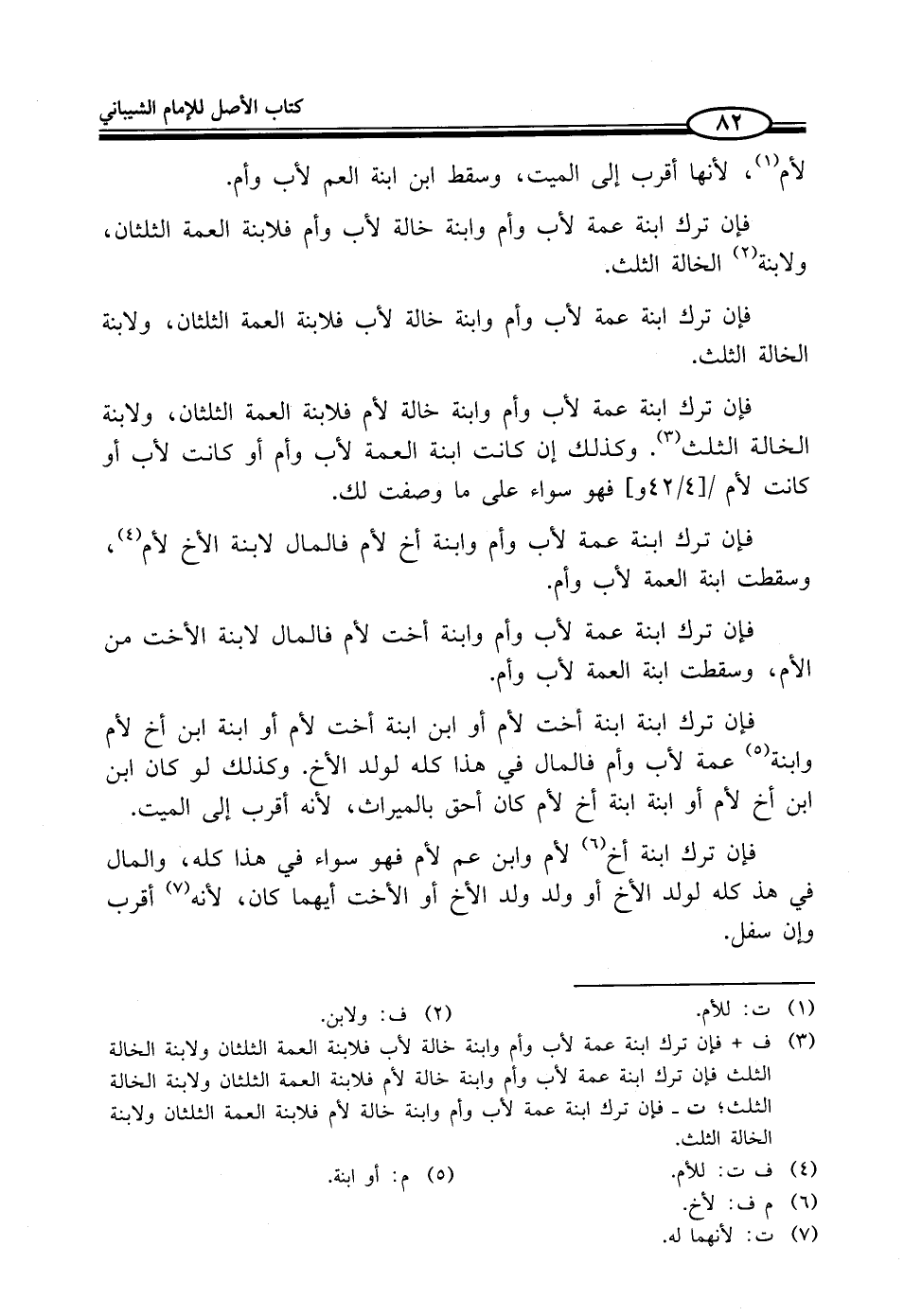 (¬3) ف + فإن ترك ابنة عمة لأب وأم وابنة خالة لأب فلابنة العمة الثلثان ولابنة الخالة الثلث فإن ترك ابنة عمة لأب وأم وابنة خالة لأم فلابنة العمة الثلثان ولابنة الخالة الثلث؛ ت - فإن ترك ابنة عمة لأب وأم وابنة خالة لأم فلابنة العمة الثلثان ولابنة الخالة الثلث.
