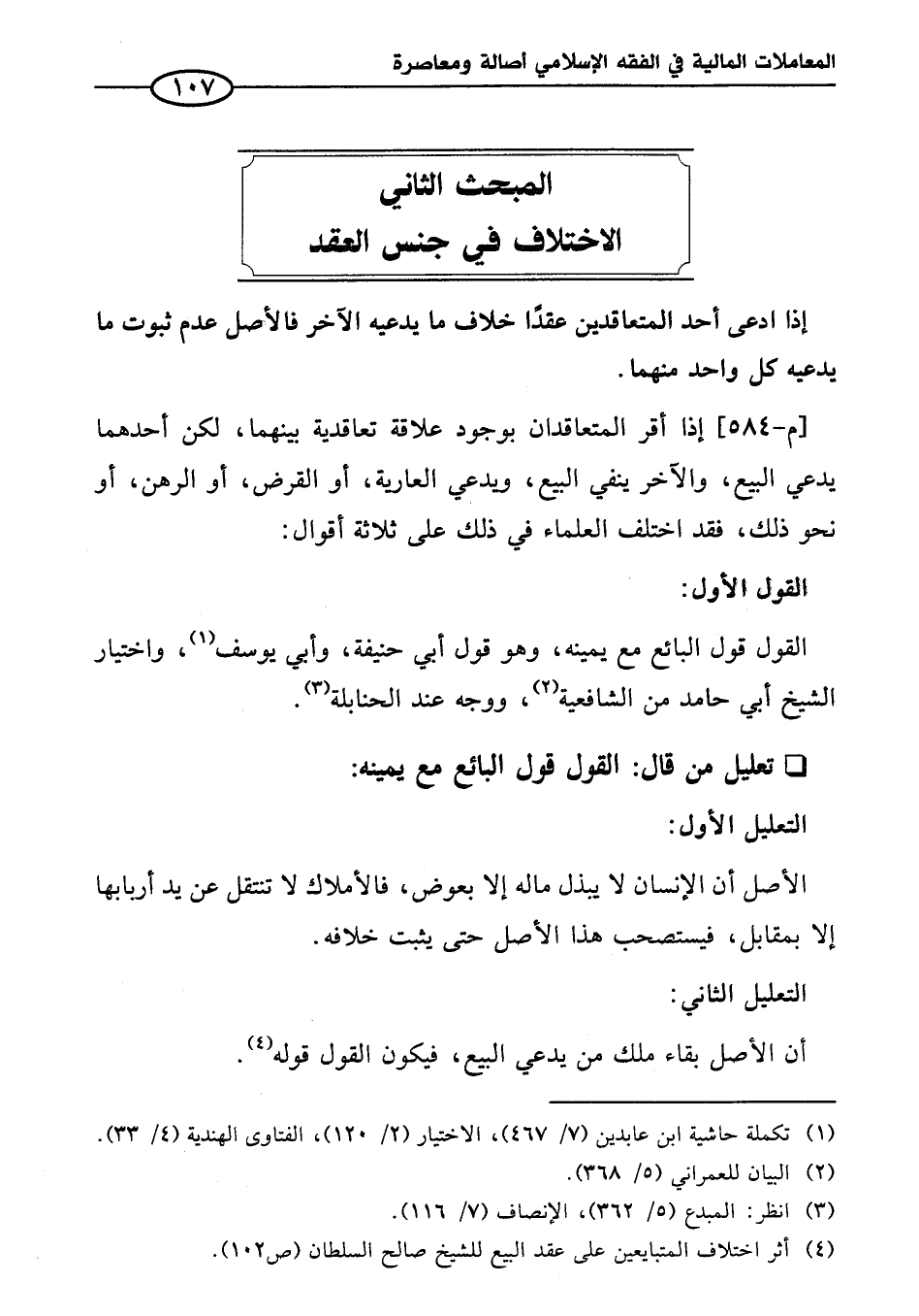 (¬٤) أثر اختلاف المتبايعين على عقد البيع للشيخ صالح السلطان (ص ١٠٢).
