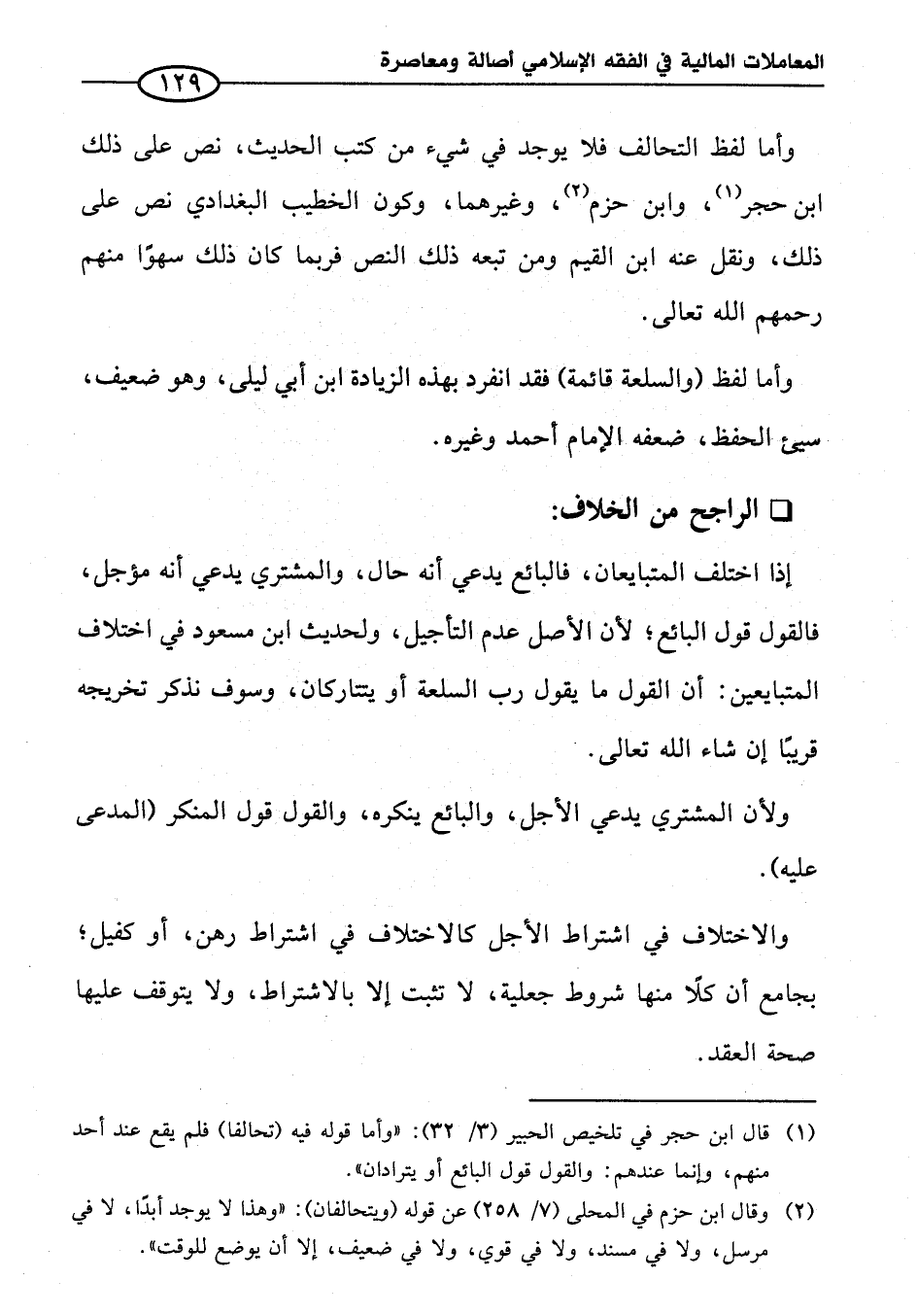 (¬٢) وقال ابن حزم في المحلى (٧/ ٢٥٨) عن قوله (ويتحالفان): "وهذا لا يوجد أبدًا، لا في مرسل، ولا في مسند، ولا في قوي، ولا في ضعيف، إلا أن يوضع للوقت".