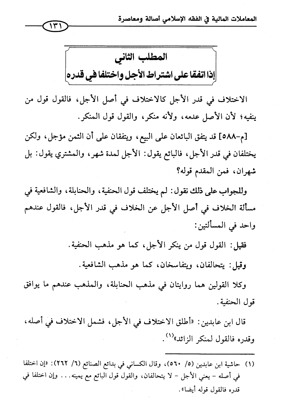 (¬١) حاشية ابن عابدين (٥/ ٥٦٠)، وقال الكساني في بدائع الصنائع (٦/ ٢٦٢): "إن اختلفا في أصله -يعني الأجل- لا يتحالفان، والقول قول البائع مع يمينه ... وإن اختلفا في قدره فالقول قوله أيضا".