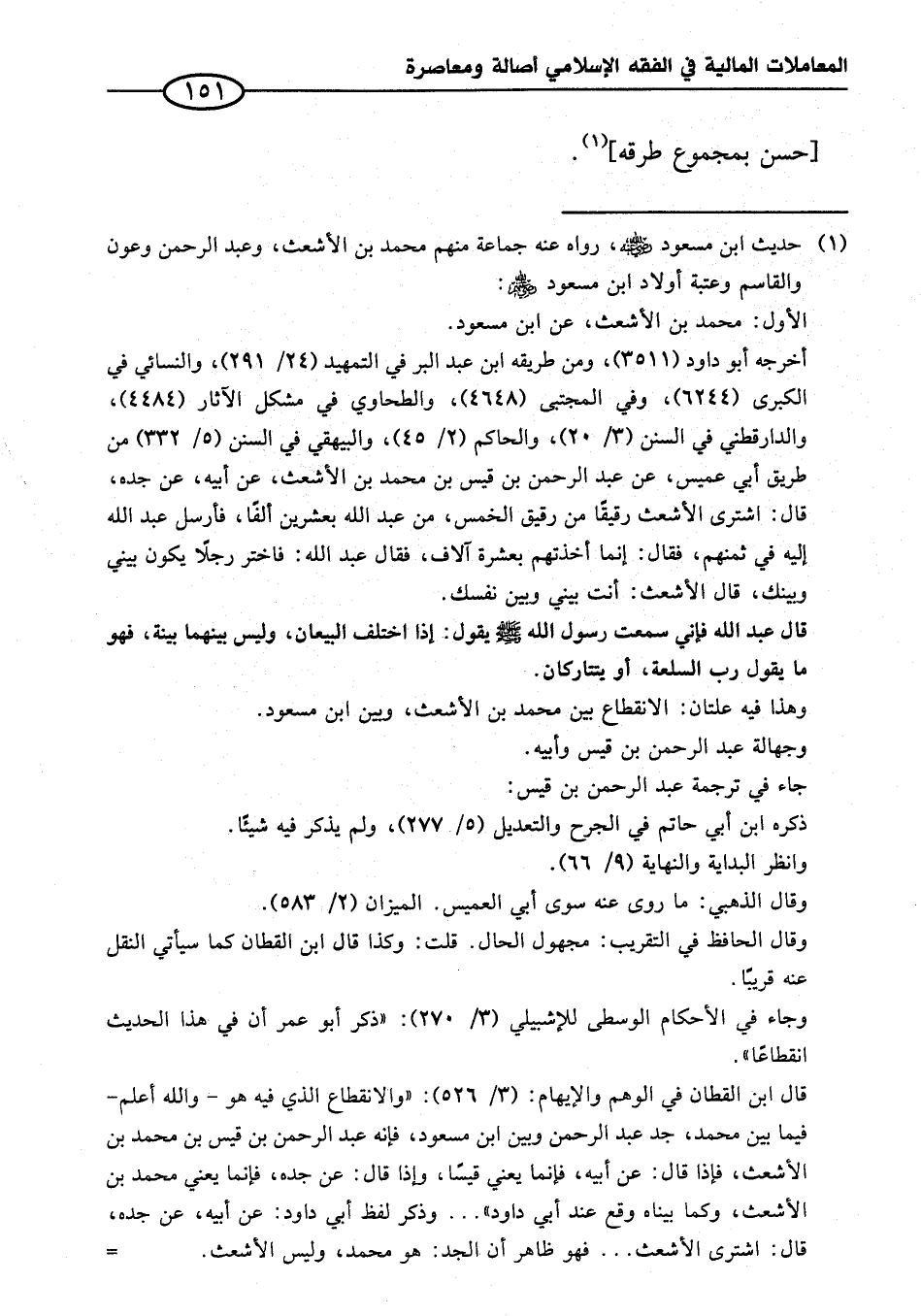 (¬١) حديث ابن مسعود - رضي الله عنه -، رواه عنه جماعة منهم محمَّد بن الأشعث، وعبد الرحمن وعون والقاسم وعتبة أولاد ابن مسعود - رضي الله عنه -: