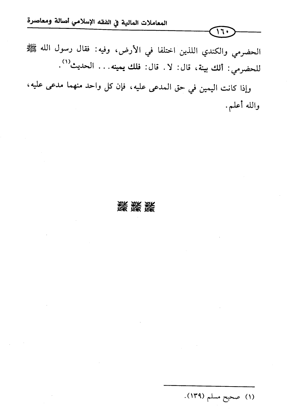 الحضرمي والكندي اللذين اختلفا في الأرض، وفيه: فقال رسول الله -صلى الله عليه وسلم- للحضرمي: ألك بينة، قال: لا. قال: فلك يمينه ... الحديث (¬١).