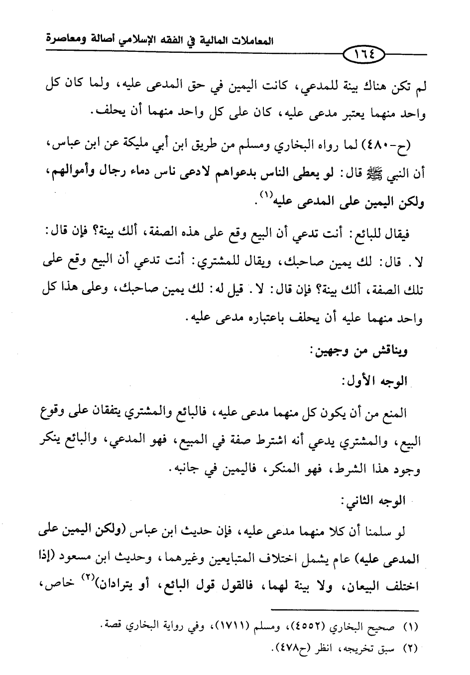 (ح-٤٨٠) لما رواه البخاري ومسلم من طريق ابن أبي مليكة عن ابن عباس، أن النبي -صلى الله عليه وسلم- قال: لو يعطى الناس بدعواهم لادعى ناس دماء رجال وأموالهم، ولكن اليمين على المدعى عليه (¬١).