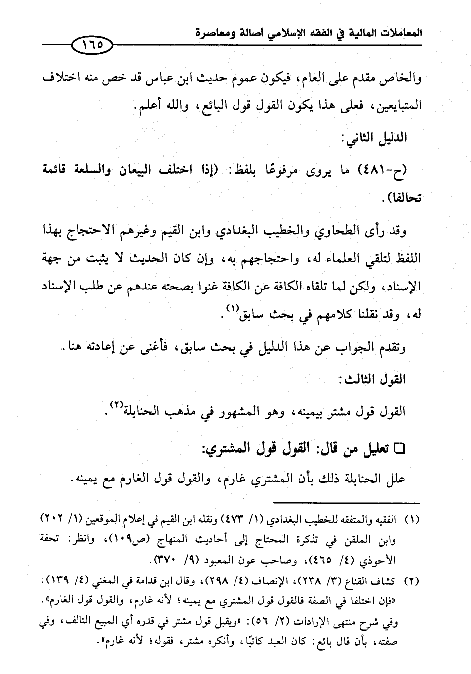 (¬١) الفقيه والمتفقه للخطيب البغدادي (١/ ٤٧٣) ونقله ابن القيم في إعلام الموقعين (١/ ٢٠٢) وابن الملقن في تذكرة المحتاج إلى أحاديث المنهاج (ص ١٠٩)، وانظر: تحفة الأحوذي (٤/ ٤٦٥)، وصاحب عون المعبود (٩/ ٣٧٠).