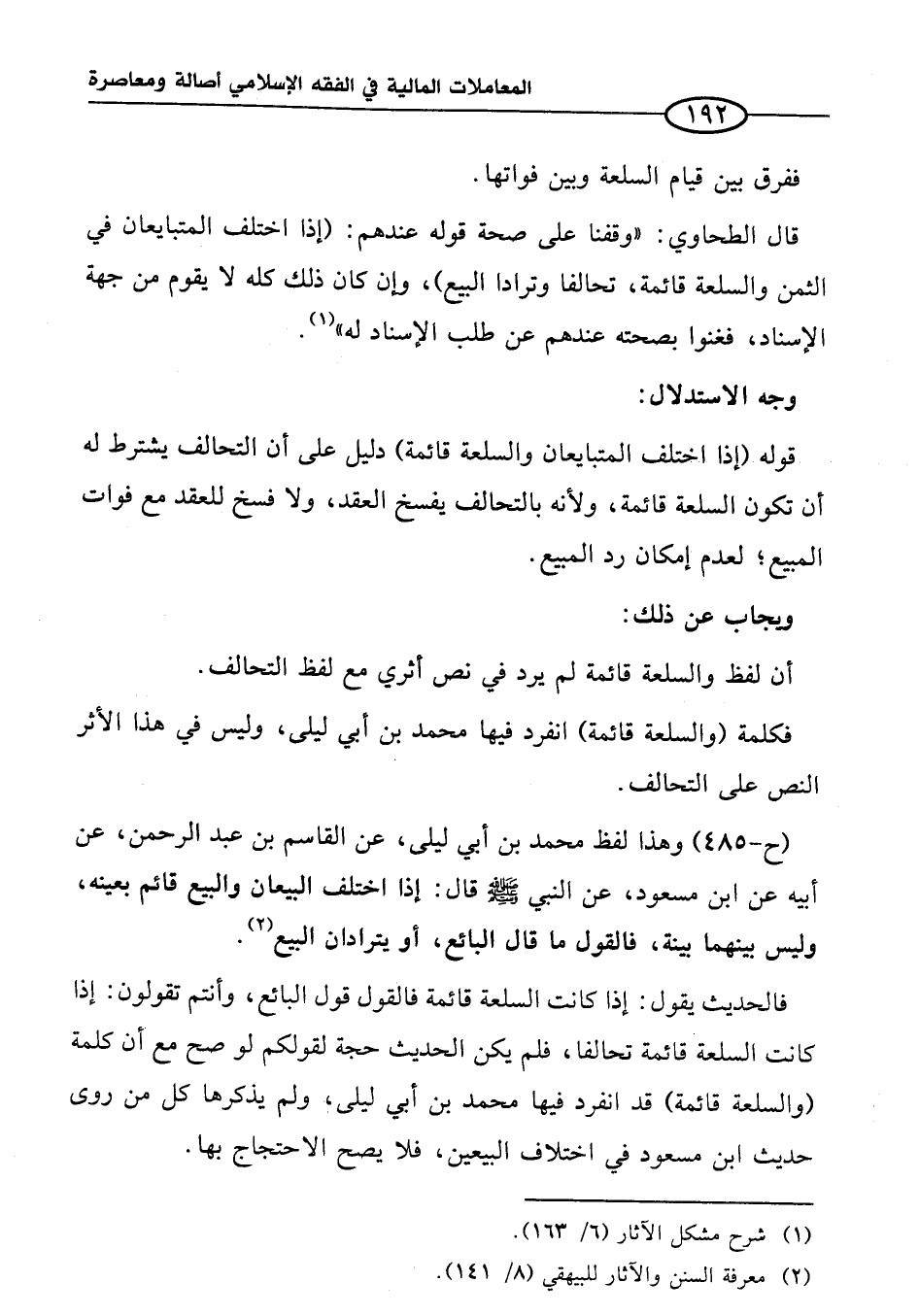 فكلمة (والسلعة قائمة) انفرد فيها محمد بن أبي ليلى، وليس في هذا الأثر النص على التحالف.