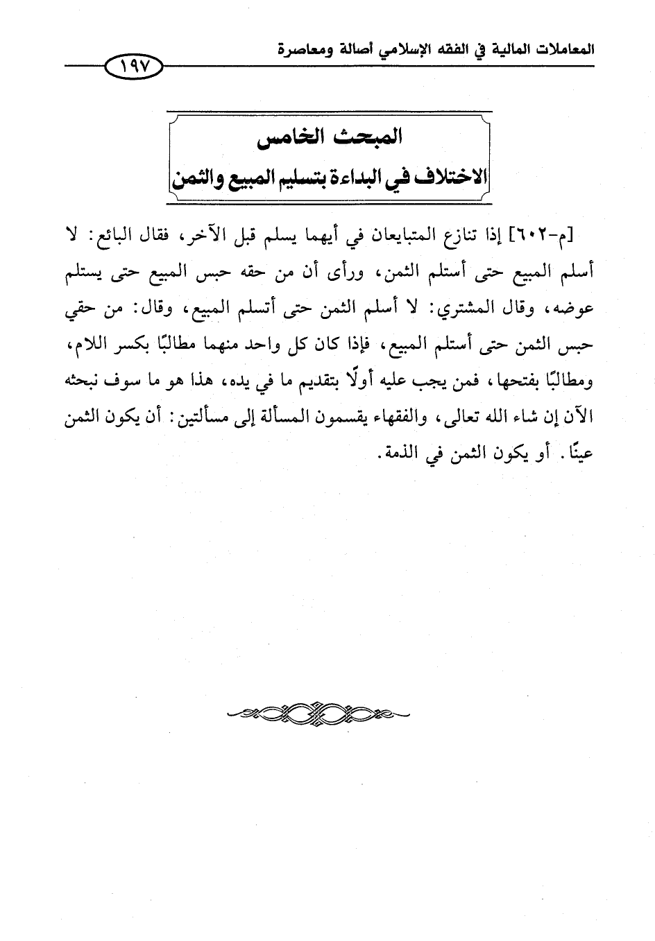 المبحث الخامس الاختلاف في البداءة بتسليم المبيع والثمن
