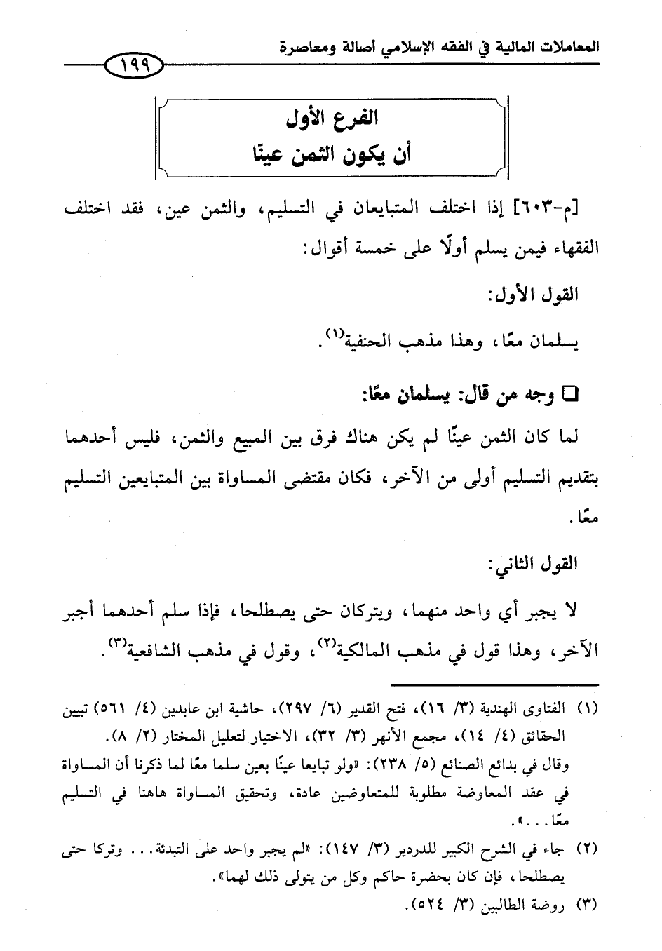 الفرع الأول أن يكون الثمن عينًا