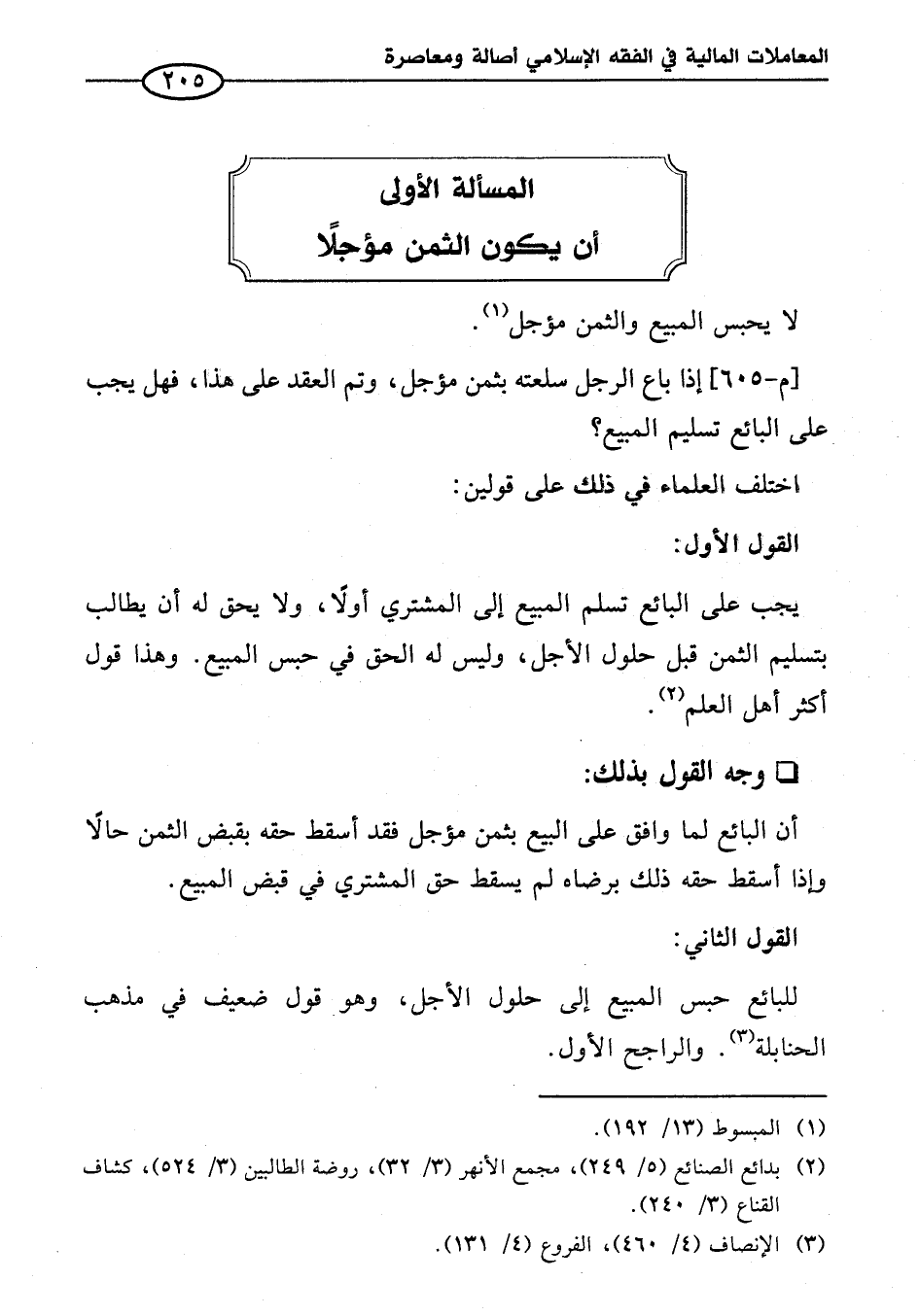 المسألة الأولى أن يكون الثمن مؤجلاً