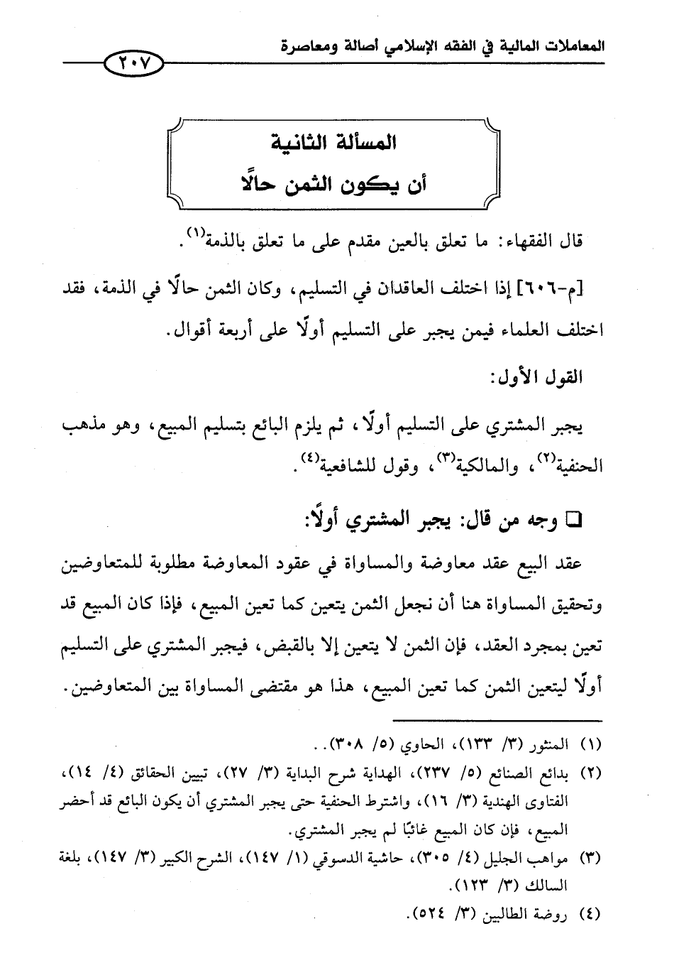 المسألة الثانية أن يكون الثمن حالاً