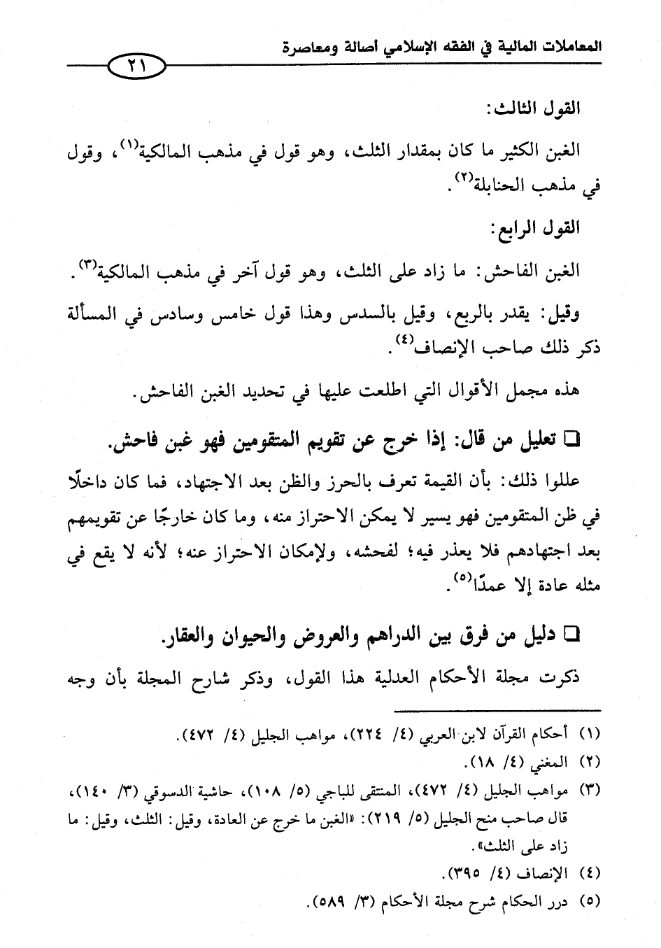 (¬٣) مواهب الجليل (٤/ ٤٧٢)، المنتقى للباجي (٥/ ١٠٨)، حاشية الدسوقي (٣/ ١٤٠)، قال صاحب منح الجليل (٥/ ٢١٩): "الغبن ما خرج عن العادة، وقيل: الثلث، وقيل: ما زاد على الثلث".