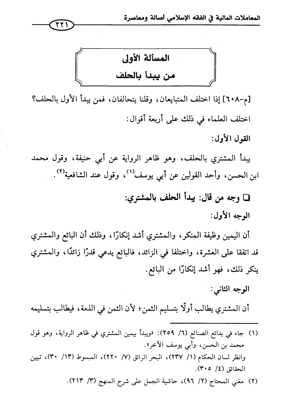 المسألة الأولى من يبدأ بالحلف