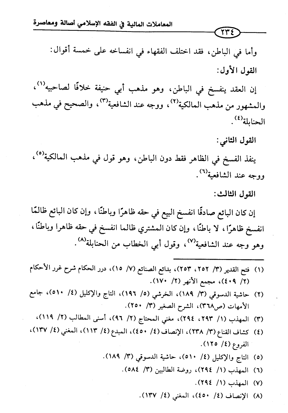 وأما في الباطن، فقد اختلف الفقهاء في انفساخه على خمسة أقوال: