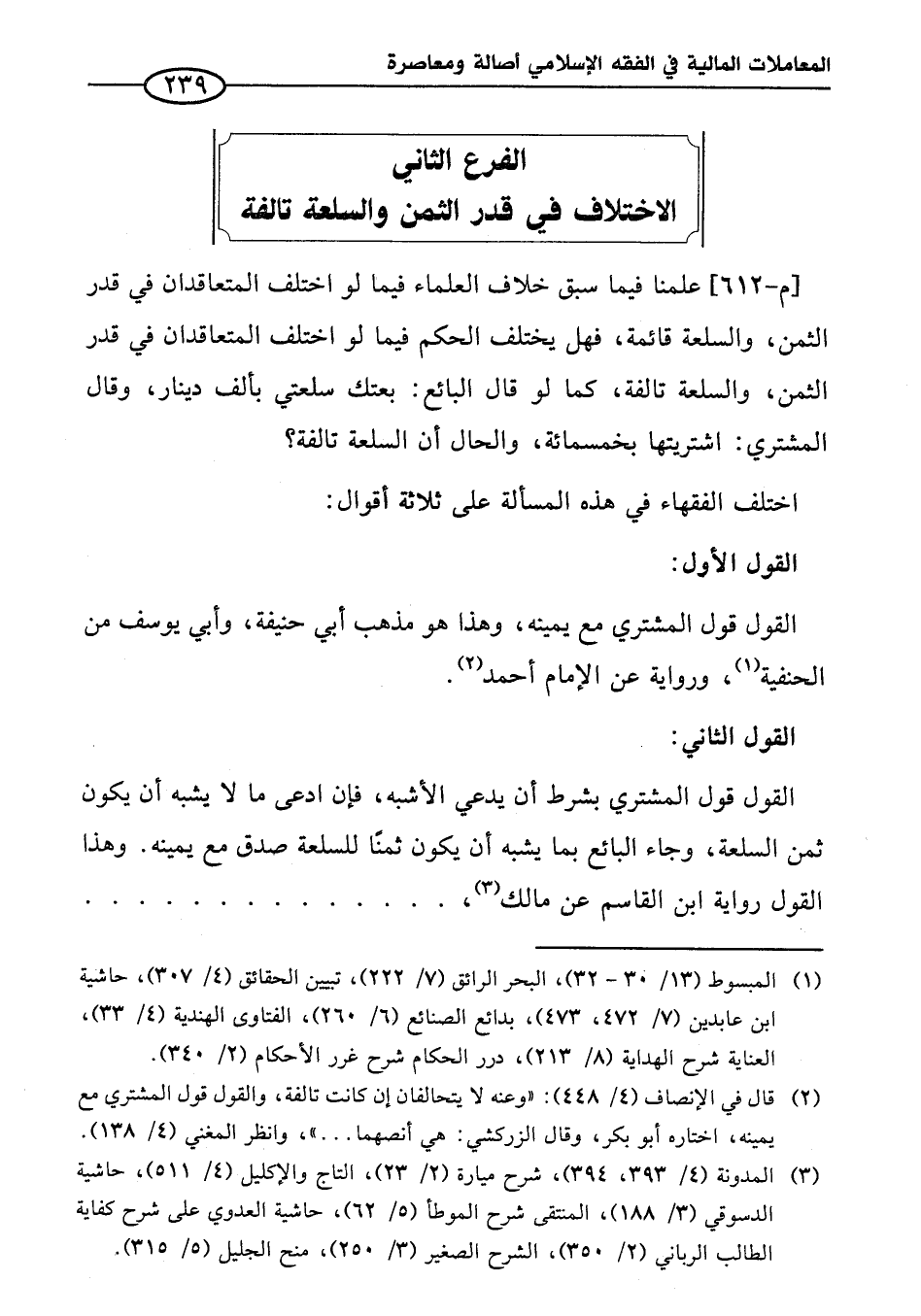 الفرع الثاني الاختلاف في قدر الثمن والسلعة تالفة