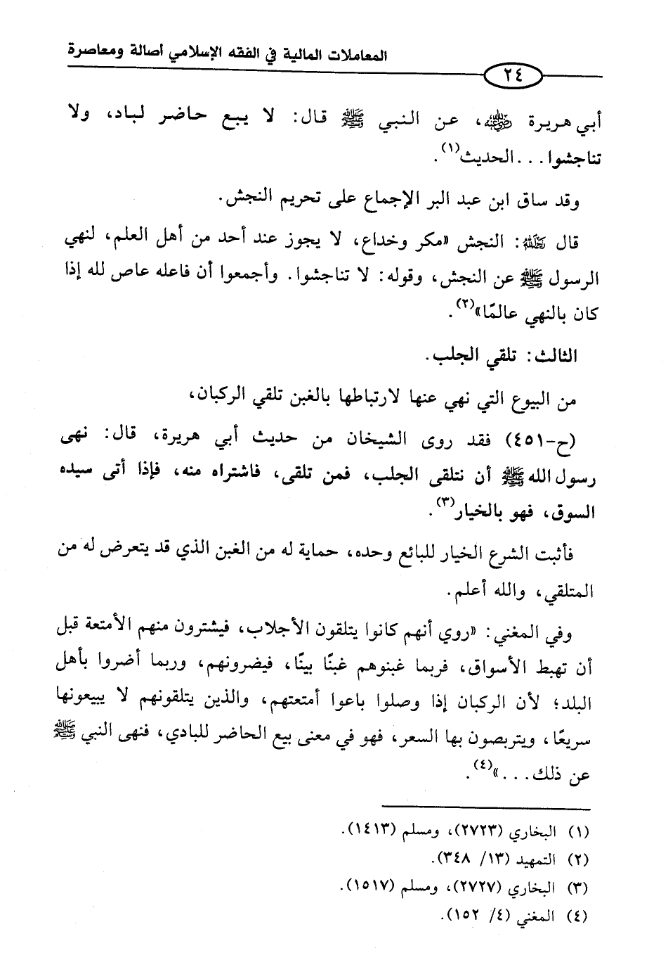 (ح-٤٥١) فقد روى الشيخان من حديث أبي هريرة، قال: نهى رسول الله - صلى الله عليه وسلم - أن نتلقى الجلب، فمن تلقى، فاشتراه منه، فإذا أتى سيده السوق، فهو بالخيار (¬٣).