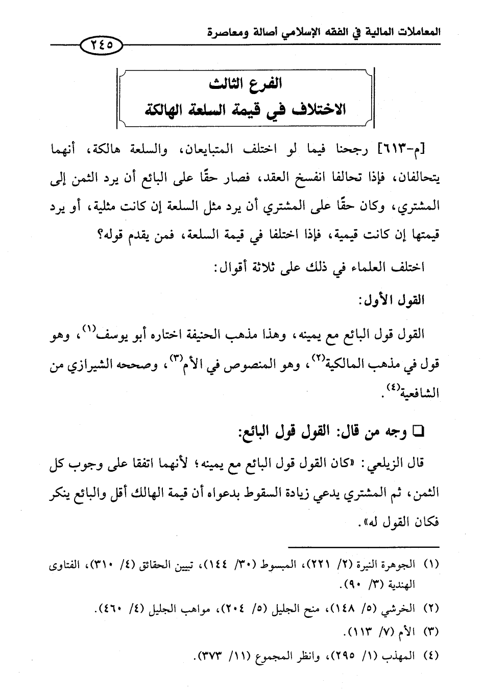 الفرع الثالث الاختلاف في قيمة السلعة الهالكة