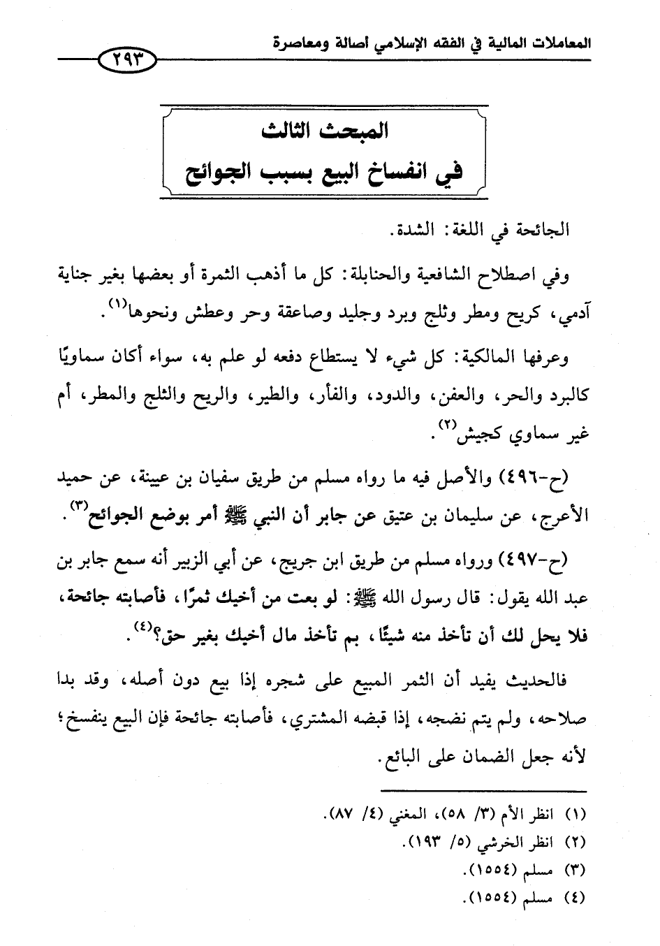 المبحث الثالث (*) في انفساخ البيع بسبب الجوائح