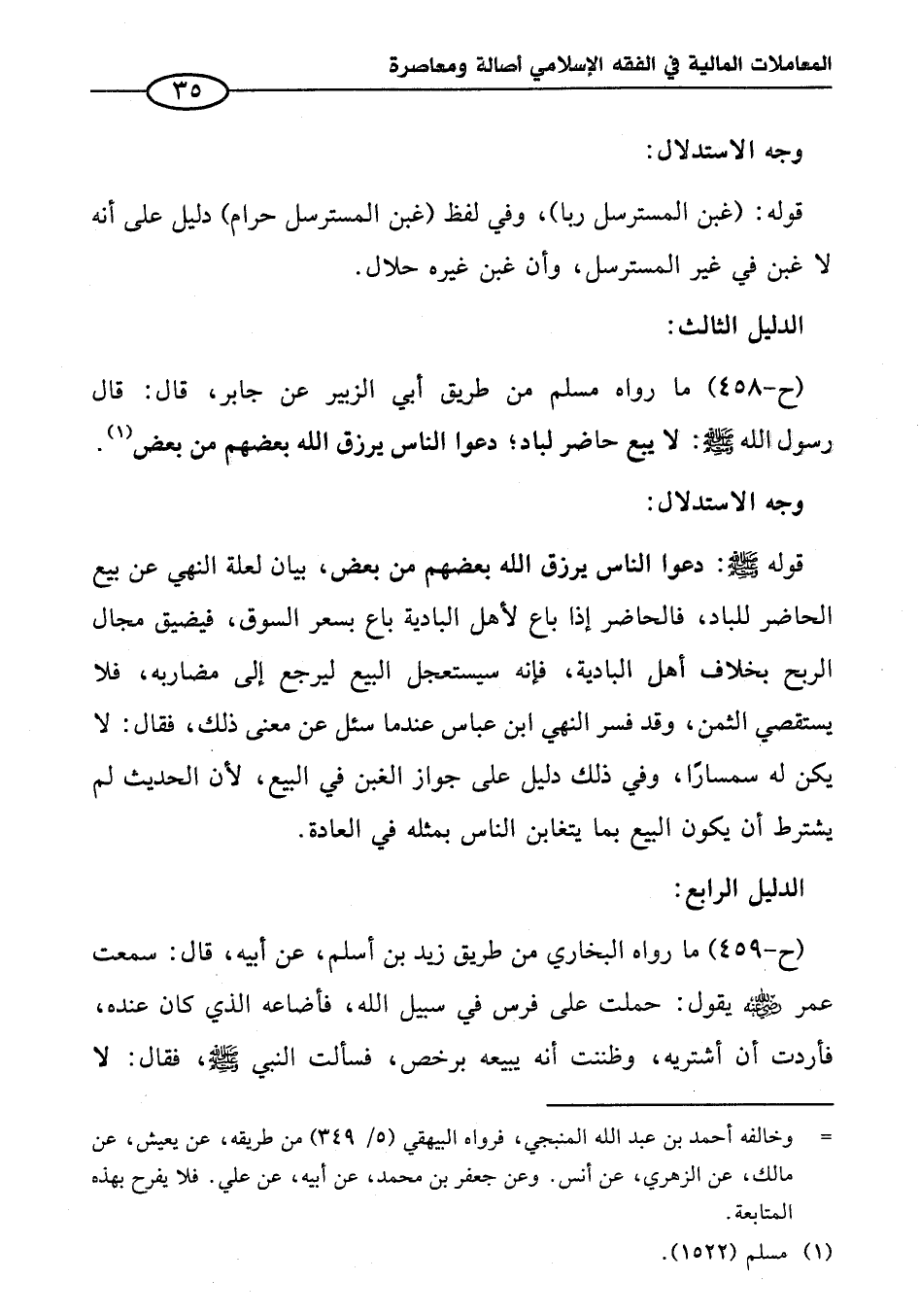 (ح-٤٥٨) ما رواه مسلم من طريق أبي الزبير عن جابر، قال: قال رسول الله - صلى الله عليه وسلم -: لا يبع حاضر لباد؛ دعوا الناس يرزق الله بعضهم من بعض (¬١).