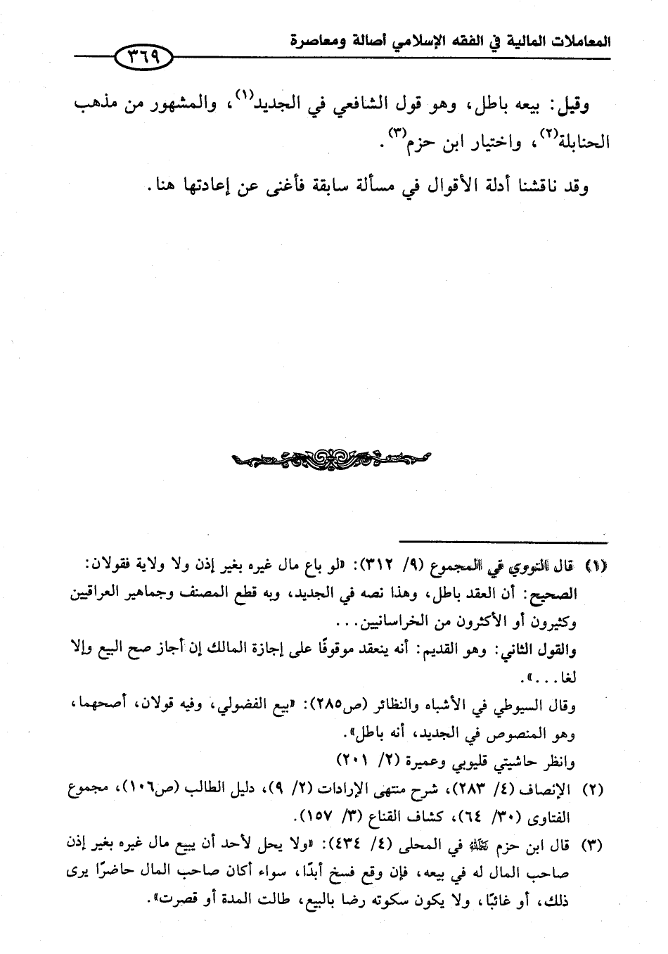 وقال السيوطي في الأشباه والنظائر (ص ٢٨٥): "بيع الفضولي، وفيه قولان، أصحهما، وهو المنصوص في الجديد، أنه باطل".