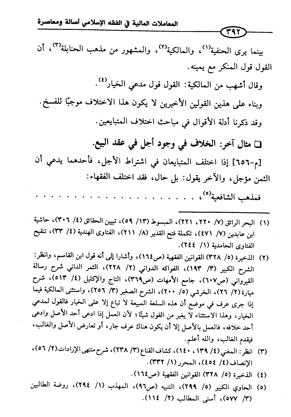 * مثال الآخر: الخلاف في وجود أجل في عقد البيع.