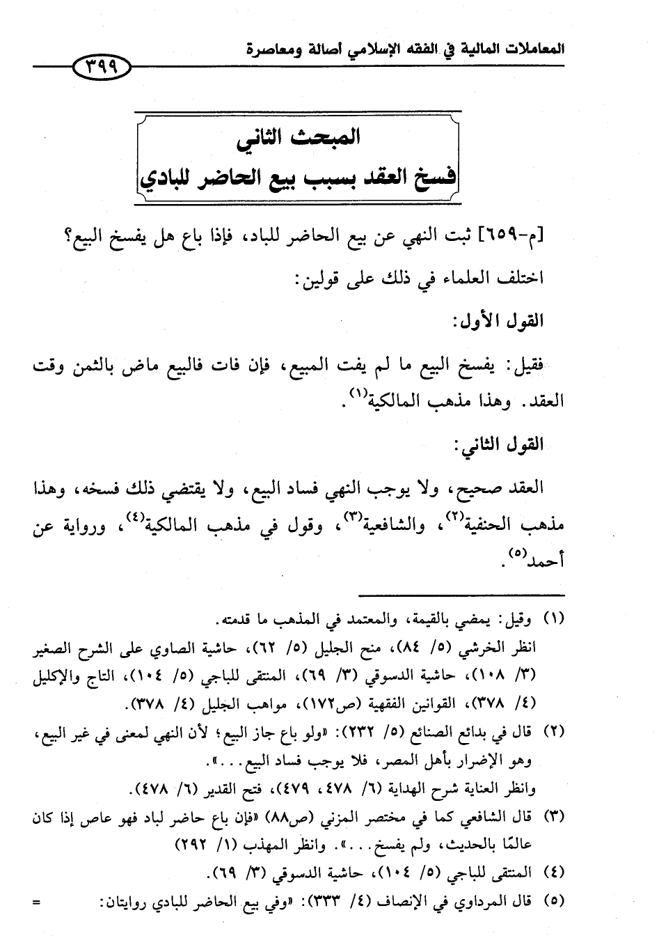 المبحث الثاني فسخ العقد بسبب بيع الحاضر للبادي