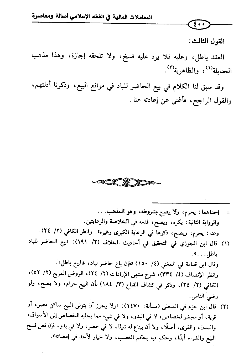 (¬١) قال ابن الجوزي في التحقيق في أحاديث الخلاف (٢/ ١٩١): "بيع الحاضر للباد باطل ... ".