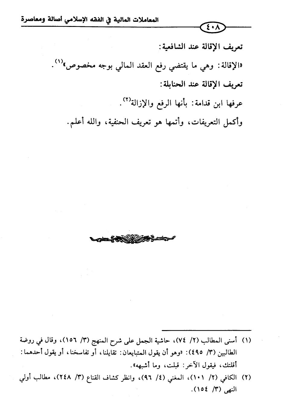 " الإقالة: وهي ما يقتضي رفع العقد المالي بوجه مخصوص" (¬١).