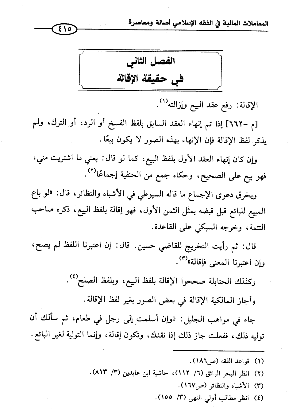 الفصل الثاني في حقيقة الإقالة