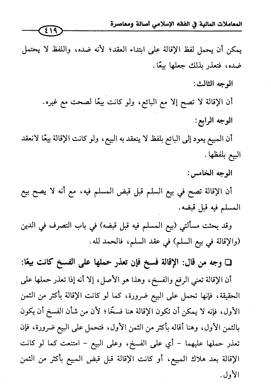 وقد بحثت مسألتي (بيع المسلم فيه قبل قبضه) في باب التصرف في الدين (والإقالة في بيع السلم) في عقد السلم، فالحمد لله.