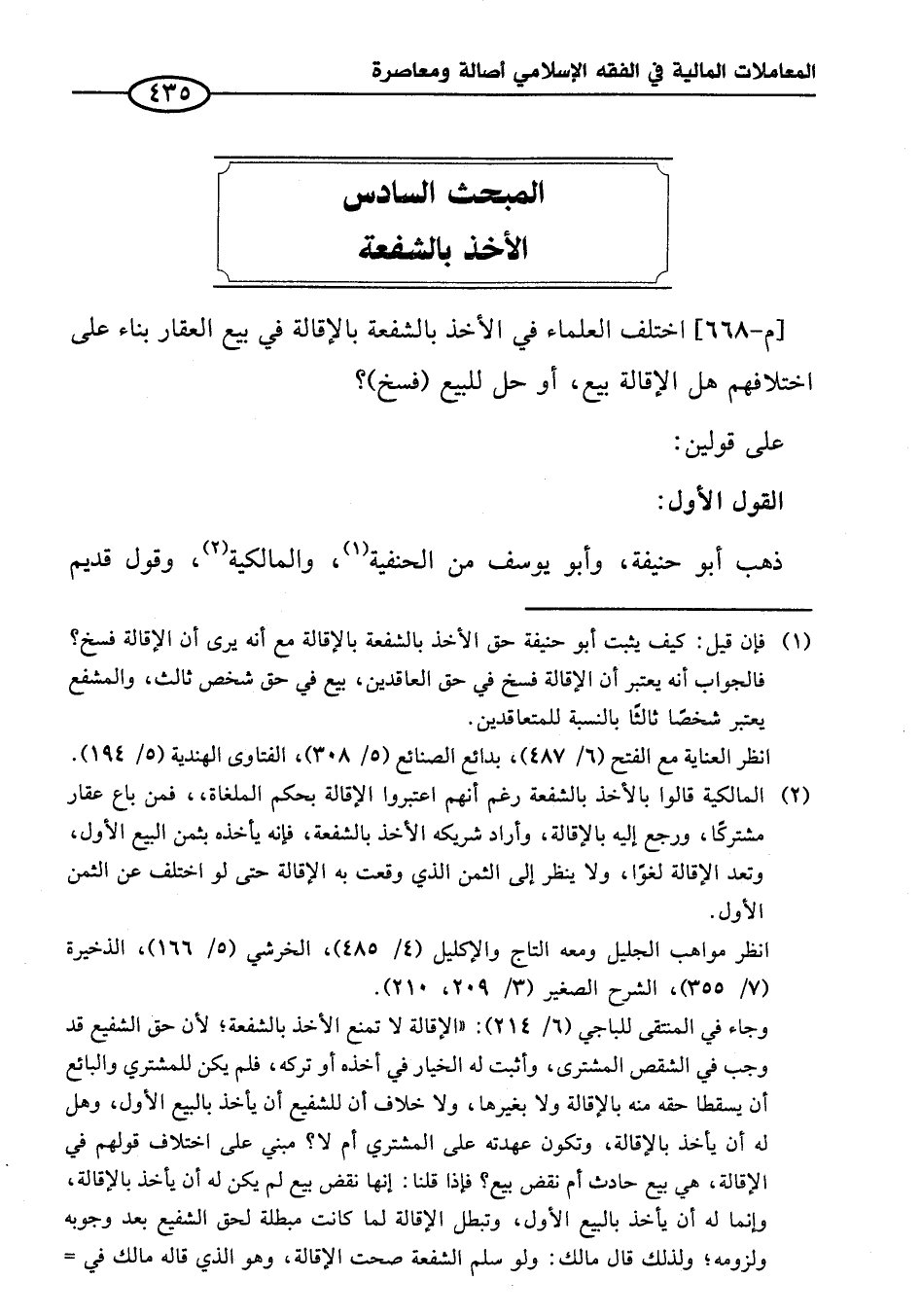 [م - ٦٦٨] اختلف العلماء في الأخذ بالشفعة بالإقالة في بيع العقار بناء على اختلافهم هل الإقالة بيع، أو حل للبيع (فسخ)؟