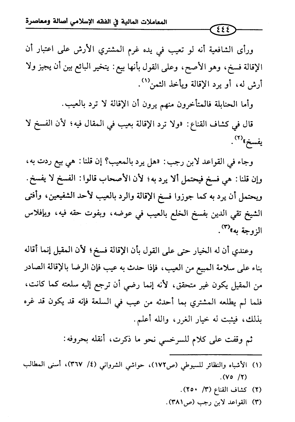 قال في كشاف القناع: "ولا ترد الإقالة بعيب في المقال فيه؛ لأنّ الفسخ لا يفسخ" (¬٢).