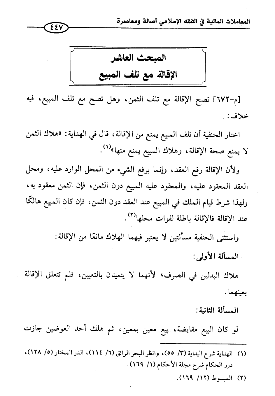 المبحث العاشر الإقالة مع تلف المبيع
