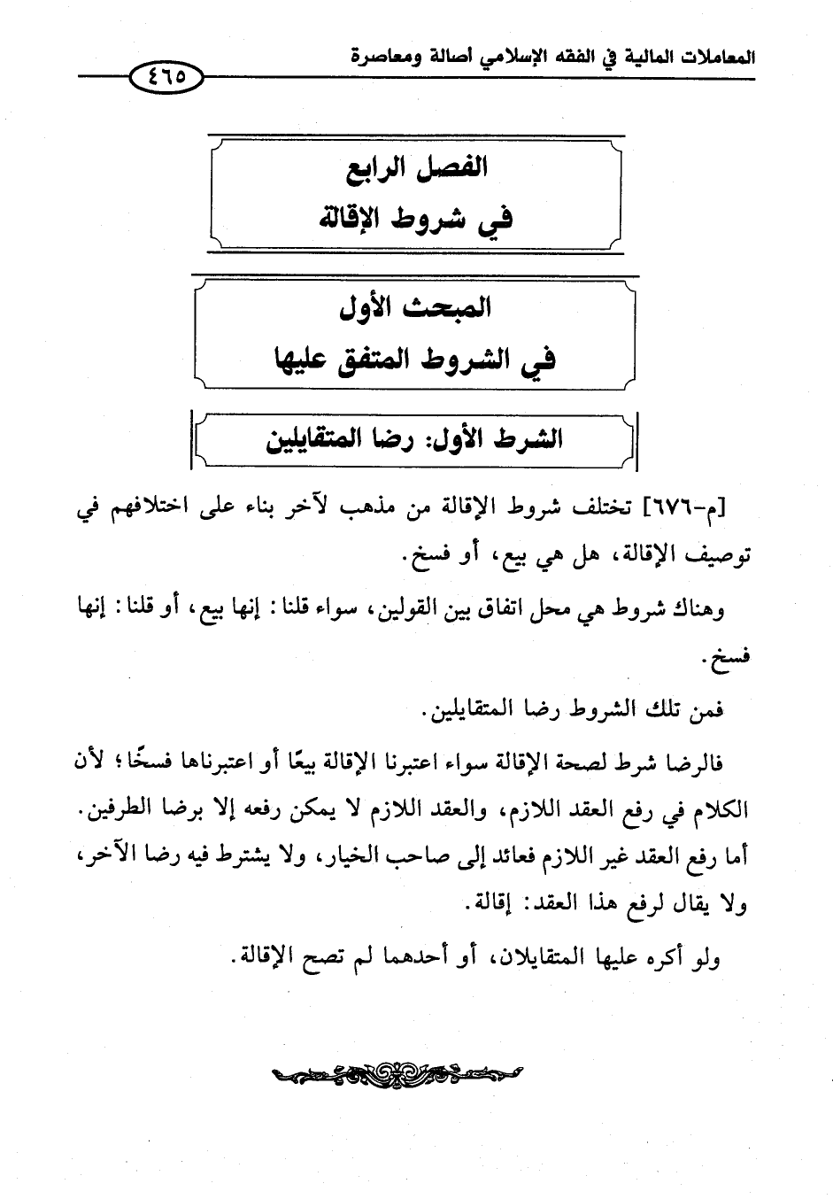 الفصل الرابع في شروط الإقالة