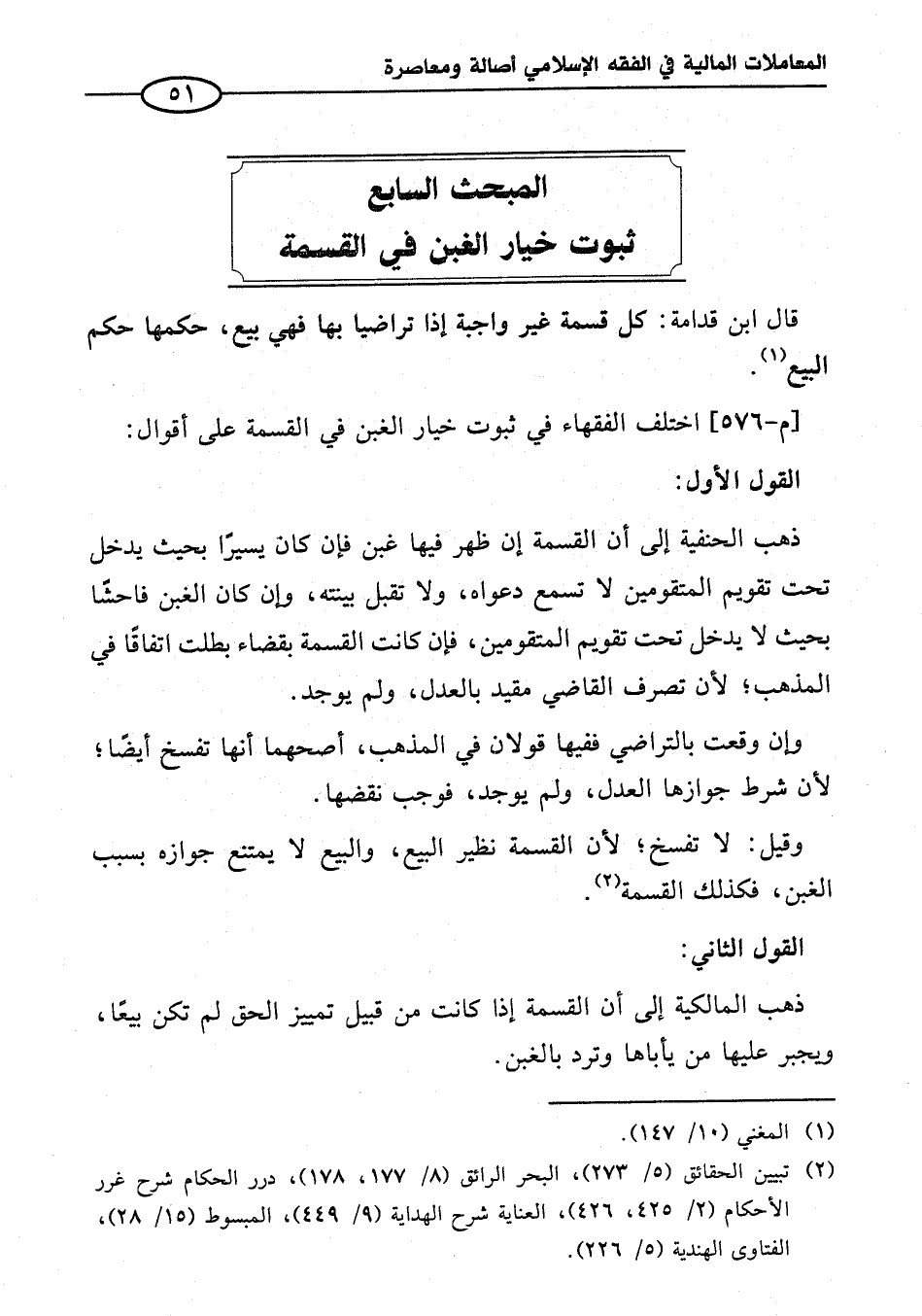 المبحث السابع ثبوت خيار الغبن في القسمة