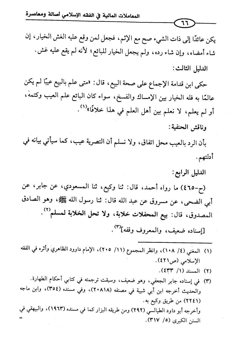 (ح-٤٦٥) ما رواه أحمد، قال: ثنا وكيع، ثنا المسعودي، عن جابر، عن أبي الضحى، عن مسروق عن عبد الله قال: ثنا رسول الله - صلى الله عليه وسلم -، وهو الصادق المصدوق، قال: بيع المحفلات خلابة، ولا تحل الخلابة لمسلم (¬٢).