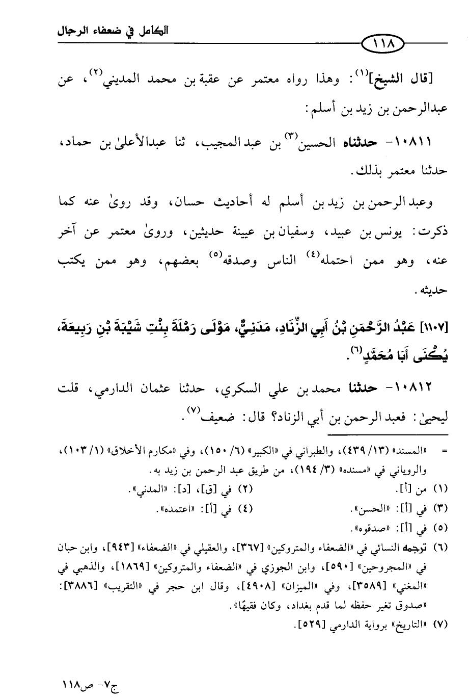 10812 - حَدثنا مُحمد بن علي السكري، حَدثنا عثمان الدارمي قلت ليحيي: فعبد الرحمن بن أبي الزناد، قال: ضعيف.