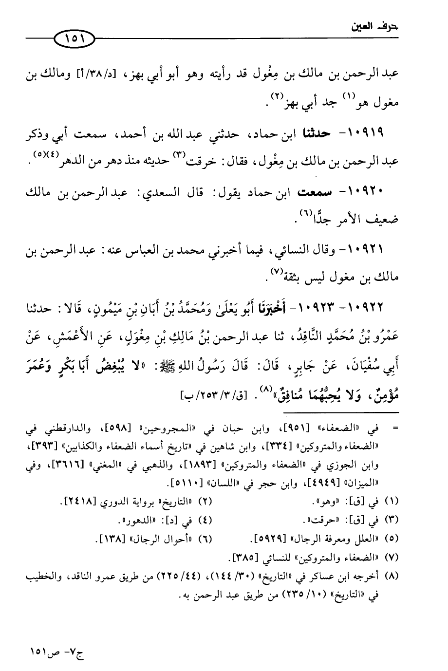 10920 - سمعتُ ابن حماد يقول: قال السعدي: عَبد الرحمن بن مالك ضعيف الأمر جدا.