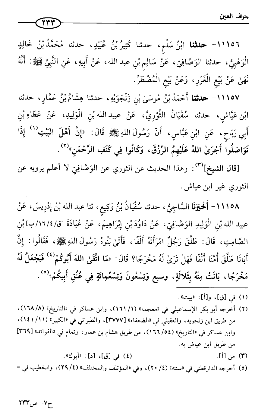 قال الشيخ: وهذا الحديث عن الثَّوري عن الوصافي، لا أعلم يرويه عن الثَّوري غير ابن عياش.