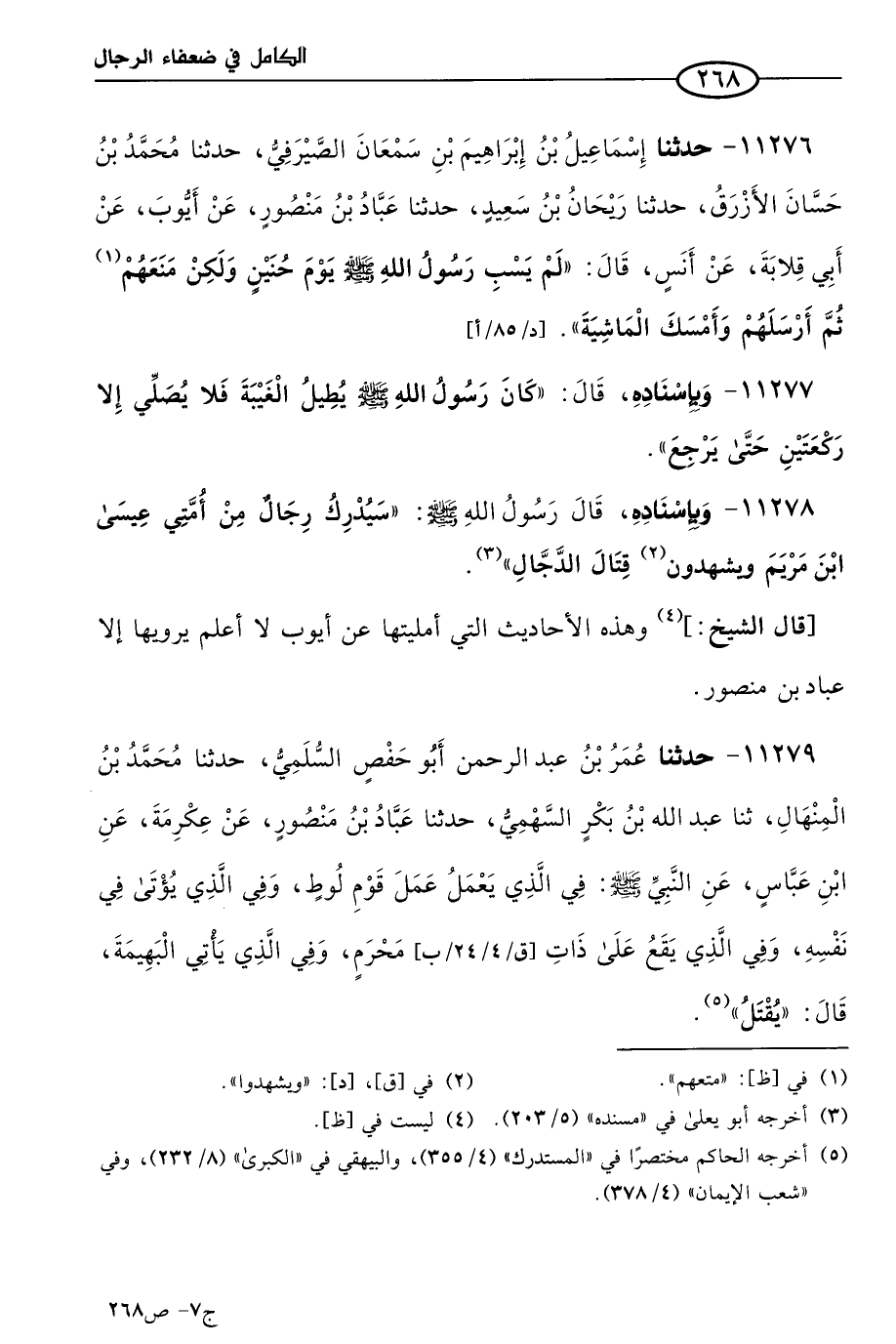 قال الشيخ: وهذه الأحاديث التي أمليتها عن أيوب لا أعلم يرويها إلا عباد بن منصور.
