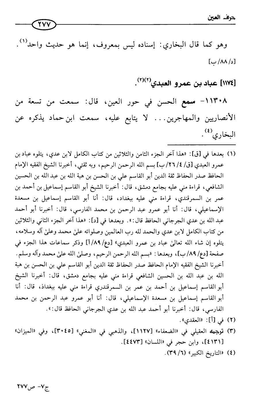 11308 - سمع الحسن؛ في حور العين، قال: سمعتُ من تسعة من الأنصاريين والمهاجرين، لا يُتَابَعُ عَليه. سمعتُ ابن حماد يذكره، عن البُخاري.
