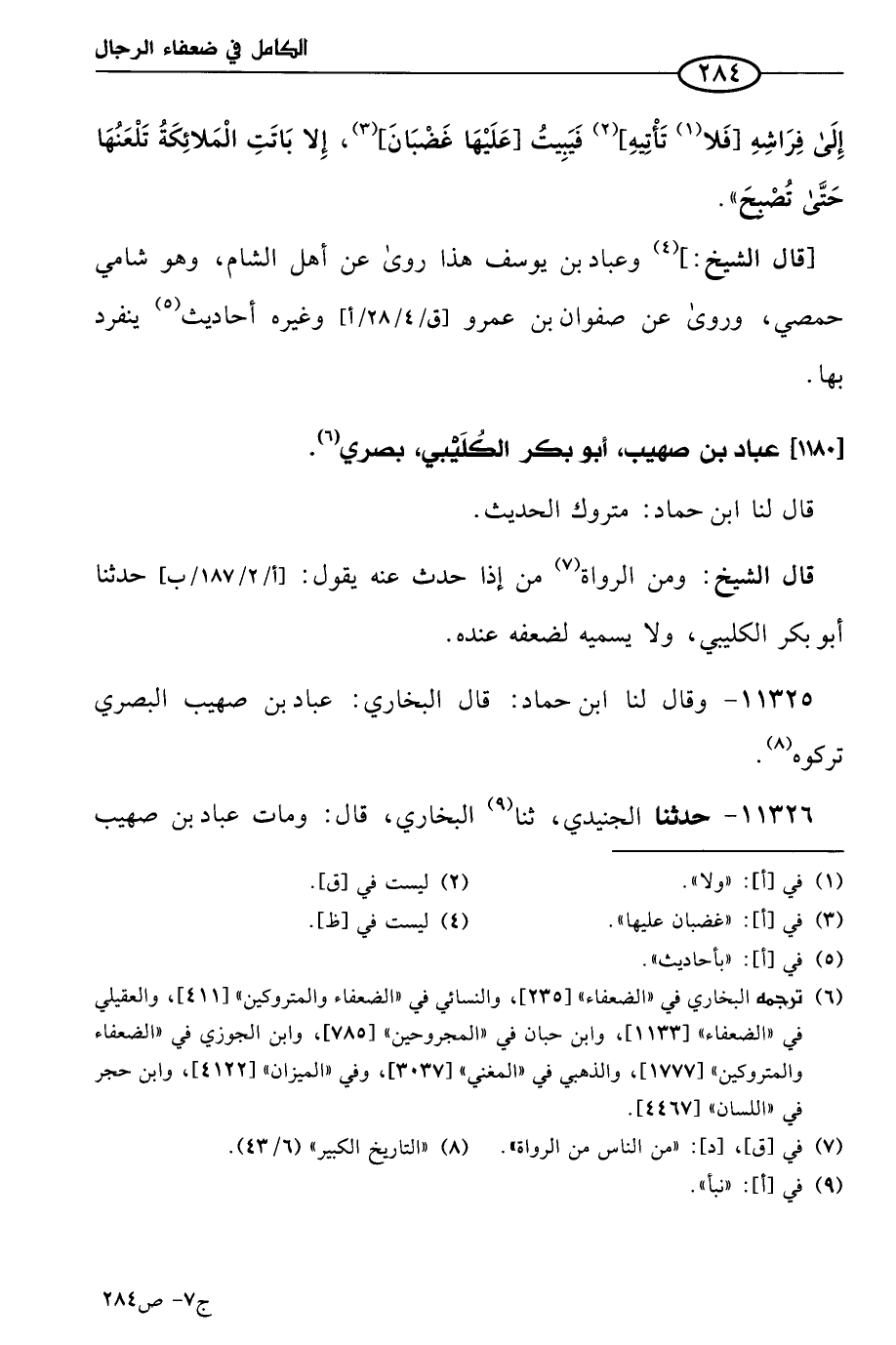 11325 - وقال لنا ابن حماد: قال البُخاري: عباد بن صهيب البصري تركوه.