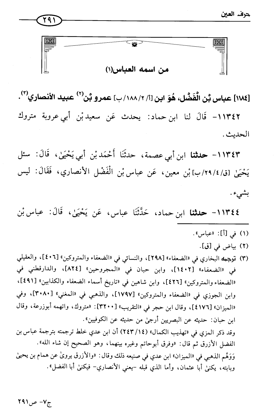 [1184] عباس بن الفضل، هو ابن عَمرو بن عُبيد الأنصاري.