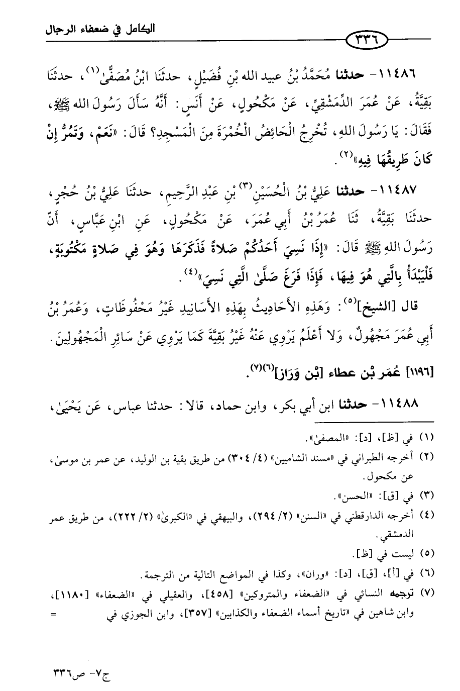 كتاب الكامل في ضعفاء الرجال لابن عدي - الرشد (اسم الجزء: 7)