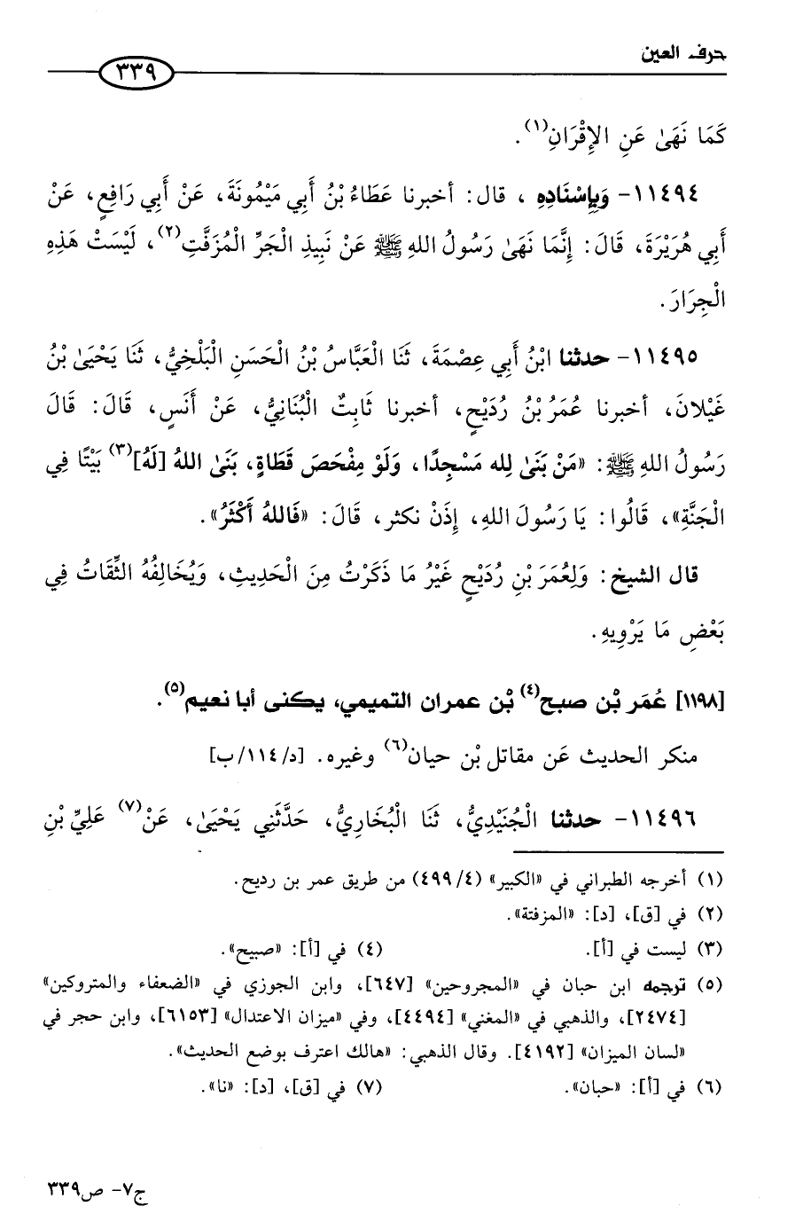 [1198] عُمر بن صبح بن عمران التميمي، يُكْنَى أبا نعيم.