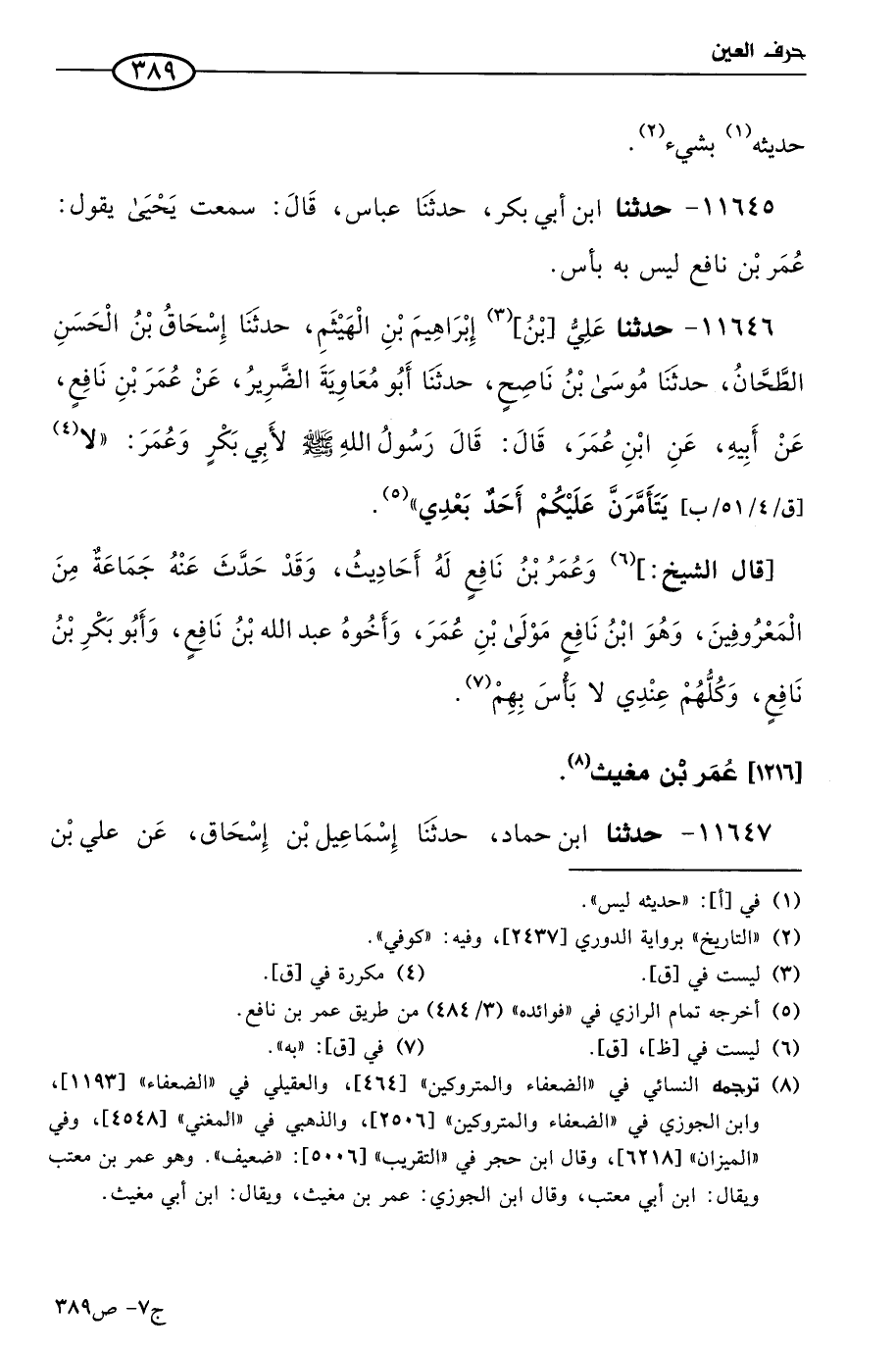 11645 - حَدثنا ابن أبي بكر، حَدثنا عباس، قال: سمعتُ يَحيى يقول: عُمر بن نافع ليس به بأس.