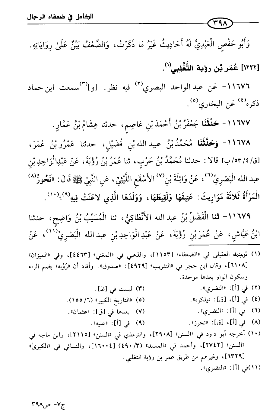 11676 - عن عَبد الواحد النصري (1)، فيه نظر. وسمعتُ ابن حماد، ذكره عن البُخاري.