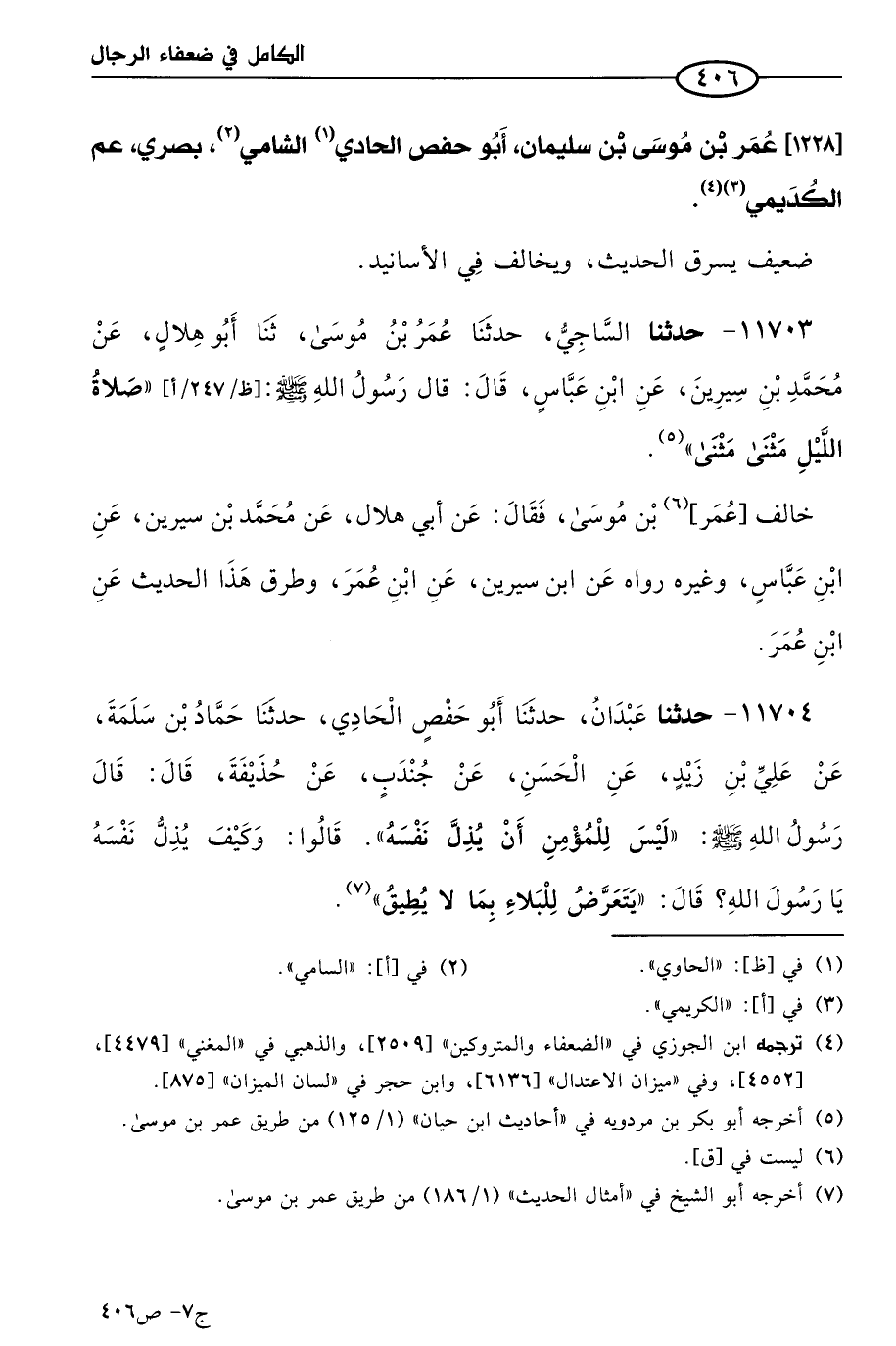 كتاب الكامل في ضعفاء الرجال لابن عدي - الرشد (اسم الجزء: 7)