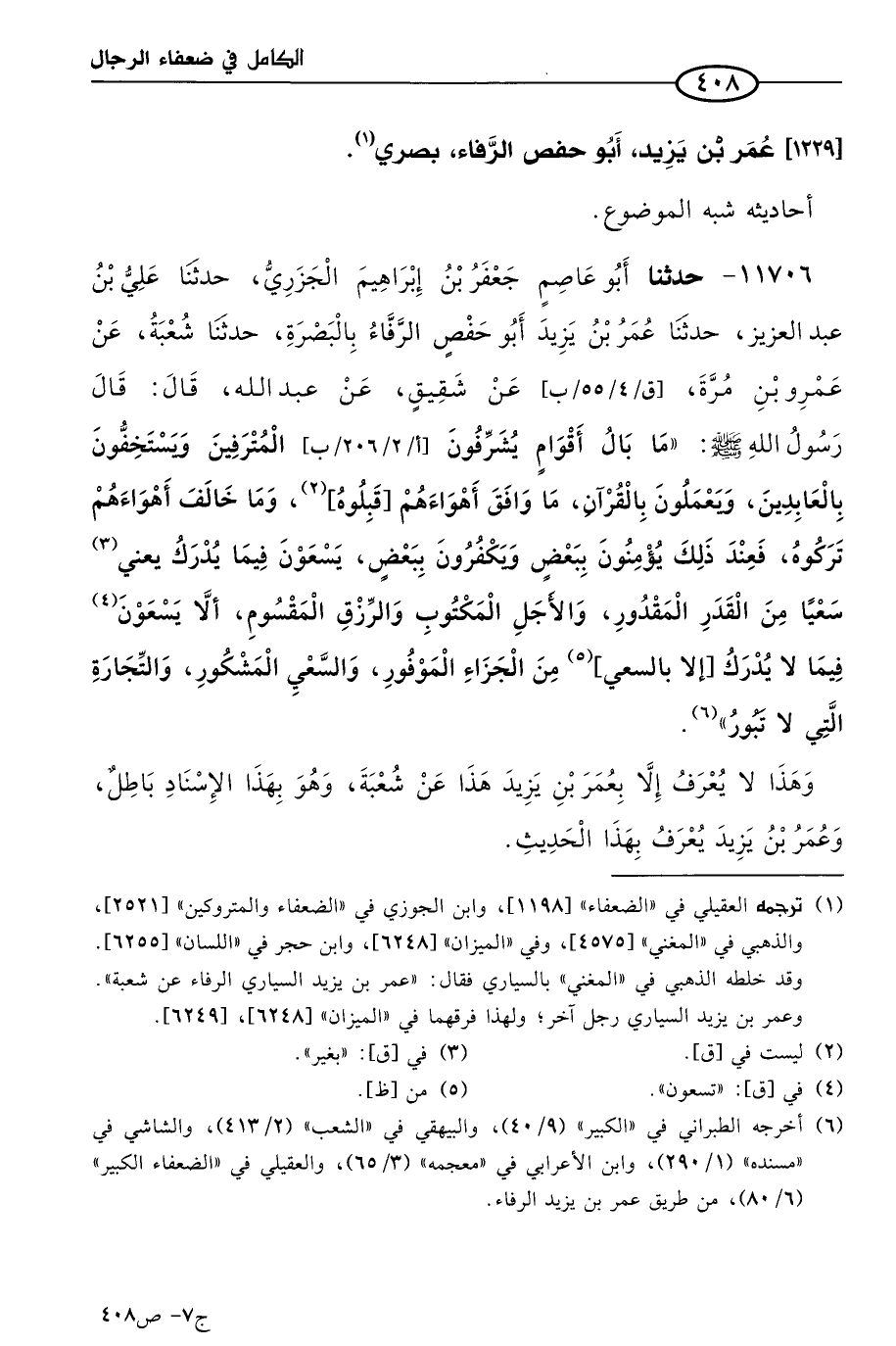 [1229] عُمر بن يزيد، أَبو حفص الرفاء، بصري.