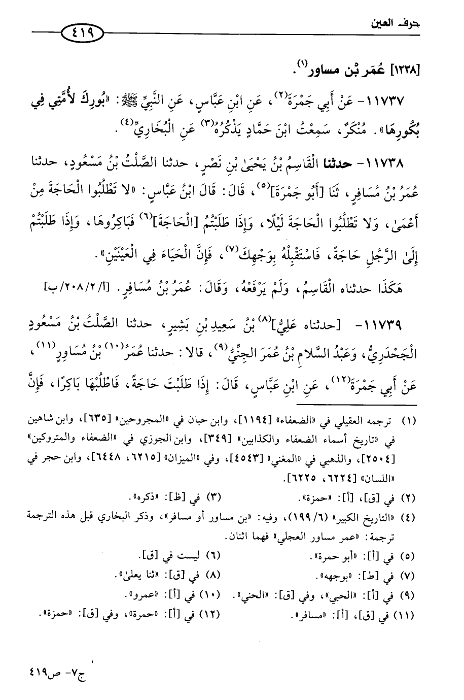 11737 - عن أبي جمرة، عن ابن عباس، عن النبي صَلى الله عَليه وسلم؛ بورك لأمتي في بكورها، منكر. سمعتُ ابن حماد يذكره، عن البُخاري.